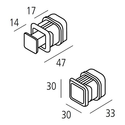 Pomoli a pulsante (l'impugnatura esce premendo sulla superficie del pomolo) Sezione frontale quadrata mm. 30x30