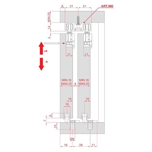 binari 980 ante scorrevoli aste mt. 3 arg. canalino doppio allumnio - BIN AG 980/3