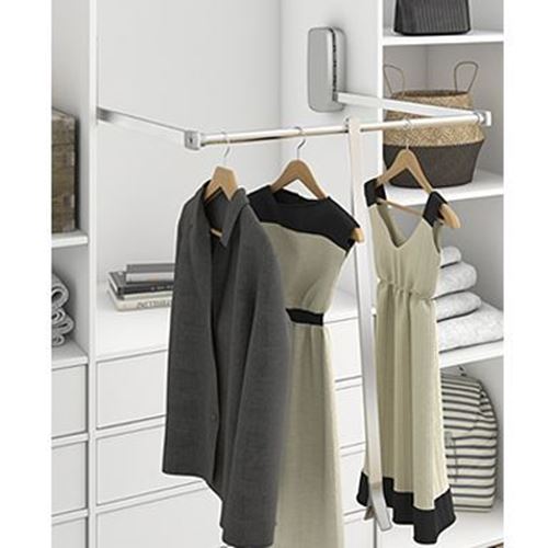 Regolabile in larghezza per adattarsi ad ogni tipo di interno di armadio.
