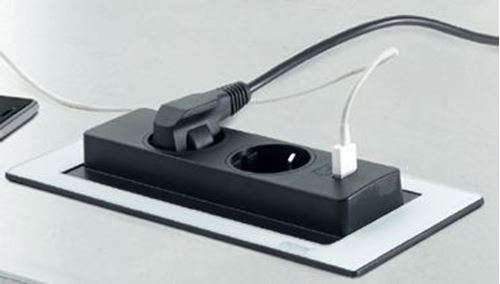 Con un semplice tocco, l’attacco dell’installazione si gira verso l’alto, liberando due prese e un caricatore USB.
