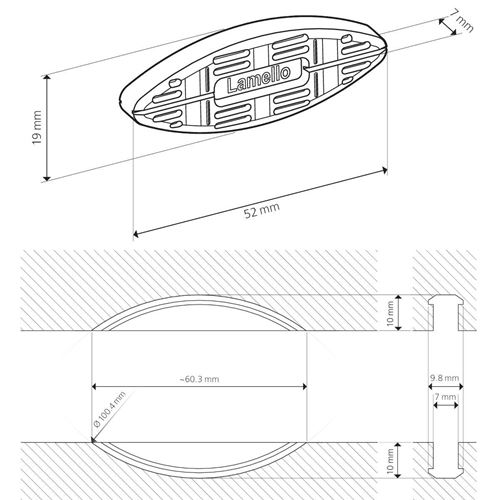 - Fresa da utilizzare: diametro 100.4 Î 7 Î 22