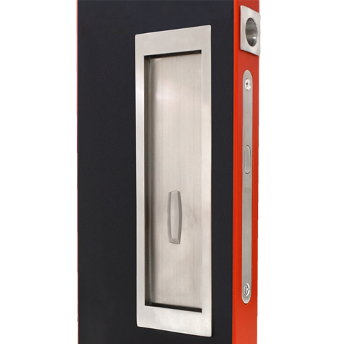Set, consiste di serratura patent, maniglia incassocon nottolino all'interno e maniglia a conchiglia.Misure mm. 210 x 63 x 8.5Finitura: inox satinato