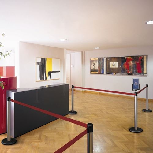 Colonne segnapercorso con nastro retrattileRealizzate in acciaio verniciatoNastro in nylon lunghezza cm. 250Peso 13 kg.Diametro colonna mm. 68Diametro base mm. 320Altezza colonna mm. 1010Colonna e base colore neroNastro colore rosso