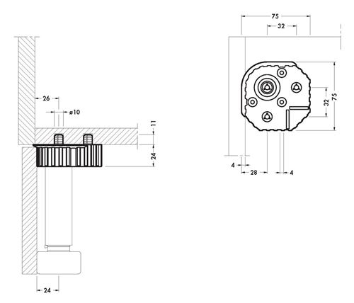 Fissaggio a pressione in 3 fori diametro mm. 10 e con viti