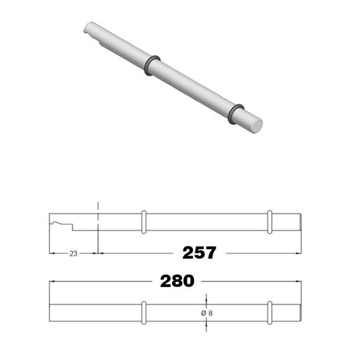 Reggimensole con guarnizioni in gomma per ripiani in vetrocon innesto a scatto per borchie MiniBorkDiametro 8 mm.Sporgenza mm. 257Lunghezza totale mm. 280Finitura cromo opaco