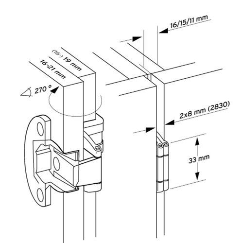 Ali per cerniere Top 2000 per applicazione con:- sormonto 11 mm.- fuga minima 8 mm.Apertura fino a 270°Lo scodellino non è fornito con l'ala e deve essere ordinato a parte