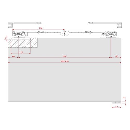 Guarnitura per porte scorrevoli con staffaautomatica con innesto