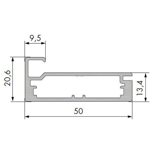 Profili in alluminio anodizzato assemblati con angolari in metallo.