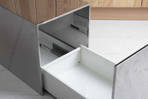 Pattumiera ad estrazione frontale in acciaio inox lucido AISI 430 per