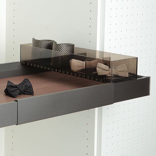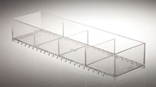 Vaschetta con 4 suddivisioni interne per cestelli PapillonLarghezza mm. 130Altezza mm. 80Profondità mm. 487Realizzata in materiale plastico trasparente