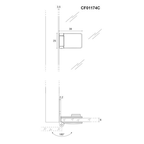 Cerniera a perno 1174 destra per ante in luce apertura 180° finitura cromo lucido