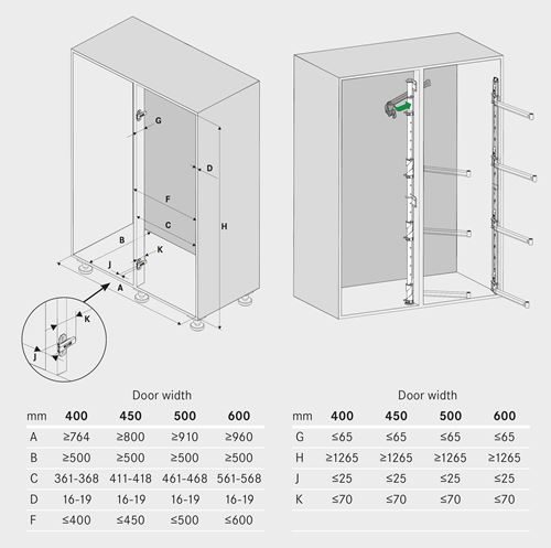 Set palo regolabile e cremagliera per il fissaggio di quattro vassoi