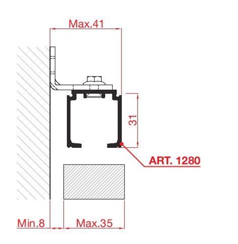 Binario 1280Utilizzabile in abbinamento ai sistemi per porte scorrevoli:-Classic-Hide-Eclettica-EvolutionSezione larghezza 33 mm, altezza 31 mmPortata fino a 160 kgFinitura alluminio anodizzato argentoLunghezza asta cm 600