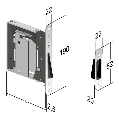 Serratura con scrocco magnetico azionato con pulsante a pressione.