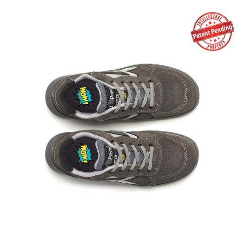 Scarpe antinfortunistiche basse, leggere e comode u power della linea Red UP, con tomaia in morbida pelle scamosciata forata ultra traspiranti e puntale in alluminio, antiperforazione, antiscivolo e suola PU/PU High Rebound in Elastopan di Basfm S1P SRC ESD