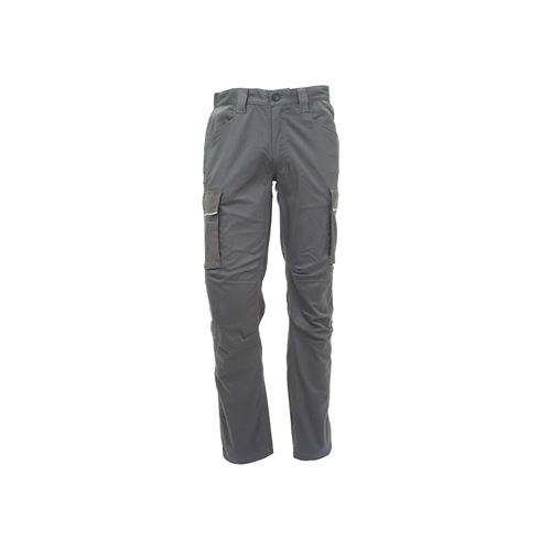 Pantalone cargo in TC stretch dotato di due ampie tasche multifunzionali laterali, 2 tasche anteriori, 2 tasche posteriori di cui una con pattina e una con chiusura di sicurezza a velcro. Rinforzo in poly-oxford su tasche laterali, elastico in vita, profili reflex su pattina tasche laterali e pattina tasca posteriore.