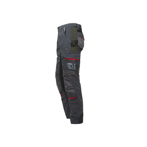 Pantalone dotato di tasca removibile fly pocket, 2 ampie tasche anteriori, tasca invisibile, tasca laterale portautensili, tasca laterale multifunzionale, 2 Free Pocket posteriori in Cordura? con chiusura di sicurezza a velcro, 2 tasche porta ginocchiera in Cordura? con interno elasticizzato; porta martello regolabile; regolazione in vita con elastico per massimo comfort, fettuccia portachiavi brandizzata.