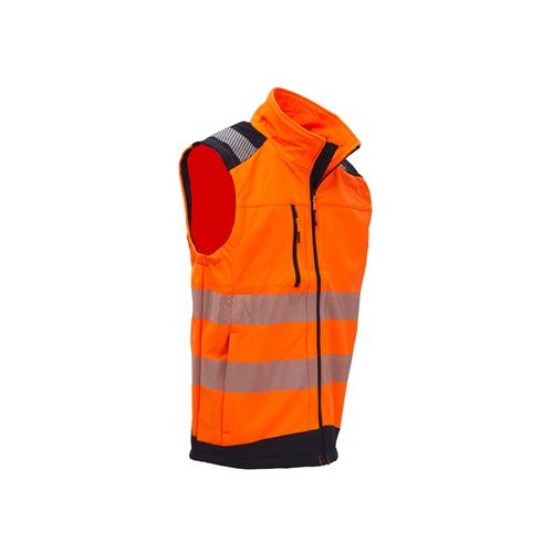Gilet in tessuto Soft Shell stretch massimo comfort, idrorepellente. Tasca portacellulare su petto con chiusura zip; coulisse antimpigliamento regolabile dall'interno tasca, fondo sagomato.