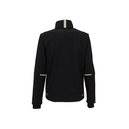 Cappuccio a scomparsa regolabile. Polsino antivento elasticizzato.
