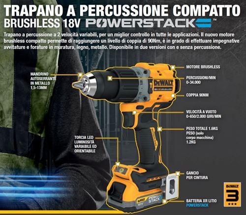 trapani batteria 18.0 v dcd800e2t-qw powerstack - ELE DEW DCD800E2T-QW