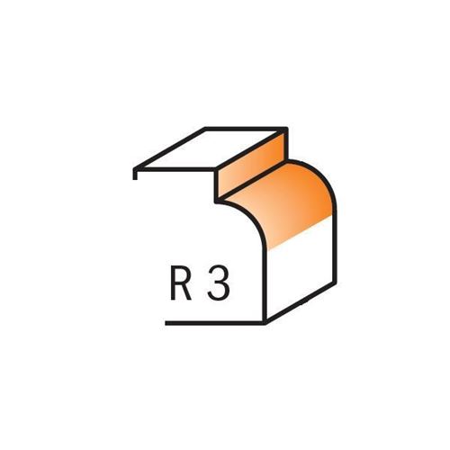 Frese a raggio concavo con cuscinetto inferiore in DerlinAttacco cilindrico diametro 6 mmDiametro fresa 18.7 mmRaggio 3 mmAltezza tagliente 12.7 mmDiametro cuscinetto 12.7 mmForo cuscinetto 4.76 mmAltezza cuscinetto 5 mm