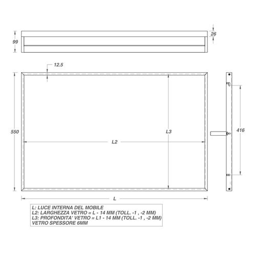 Larghezza del vetro: luce interna del mobile (larghezza esterna del