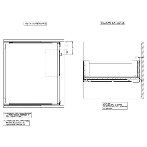 Kit binario elettrificato Vario Light Drawer lunghezza 150 cm.