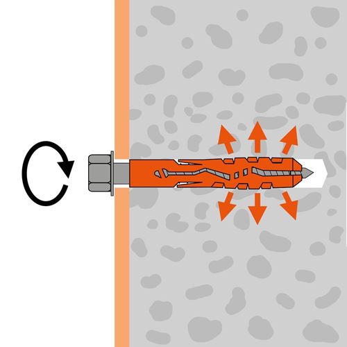 - Knock-in Protection - Sistema di blocco della vite: evita l'espansione del tassello in fase d'inserimento