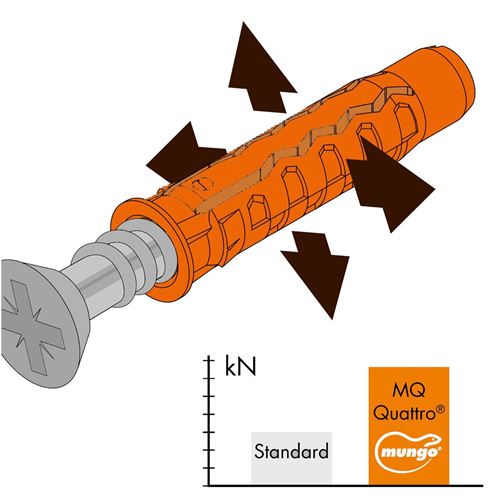 - Knock-in Protection - Sistema di blocco della vite: evita l'espansione del tassello in fase d'inserimento