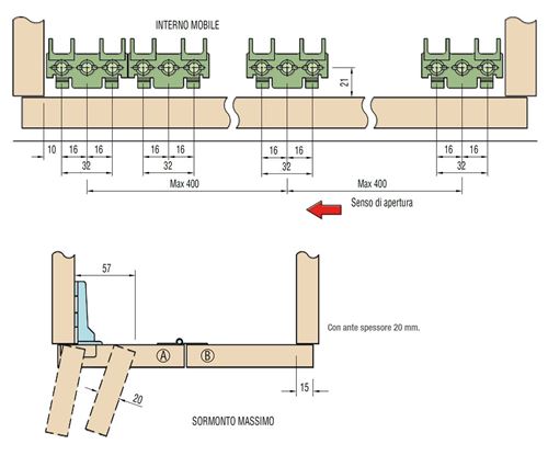 Per il fissaggio al mobile utilizzare i supporti a scatto (da ordinare