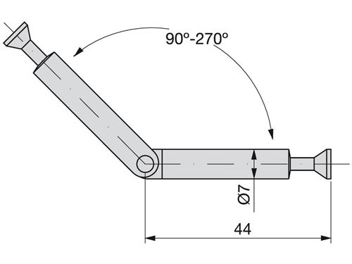 Tiranti doppi snodati per giunzioni RasfixPermettono di realizzate giunzioni con battuta ad angoloDiametro mm. 7Interasse mm. 44 (dal fulcro di rotazione dello snodo)Finitura zincata