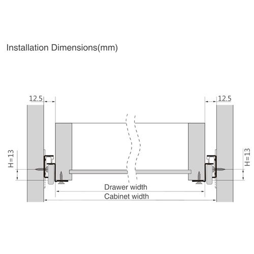 Guide a rullo con staffa per il montaggio sul fondo del cassettoLunghezza nominale 500 mmFinitura verniciata bianca