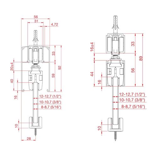 Con guide inferiori di scorrimento da 8-8,7 / 10-10,7 / 12-12,7 mm