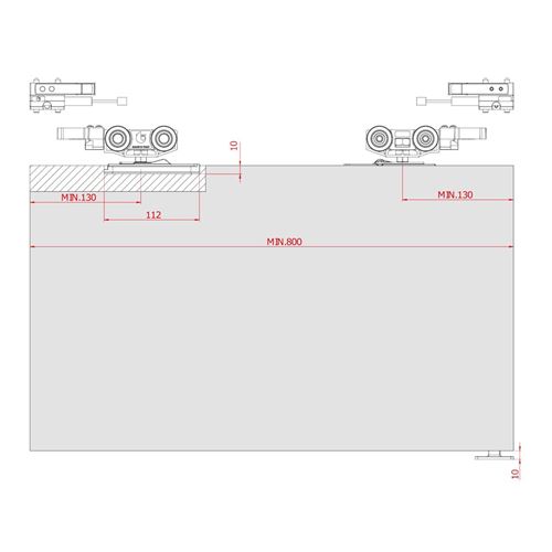 Guarnitura per porte scorrevoli con staffa automatica con innesto