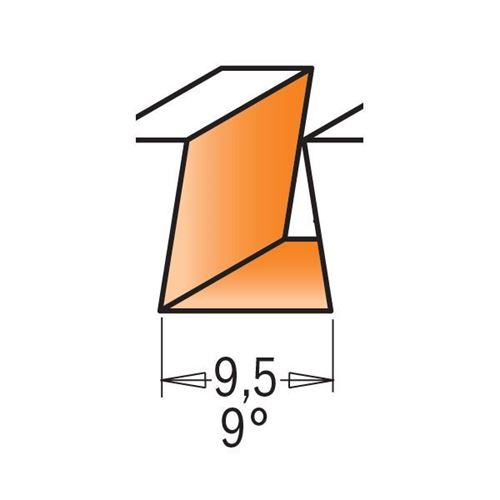Fresa incastri coda di rondine diametro 9.5 mm inclinazione 9° con attacco diametro 6 mm