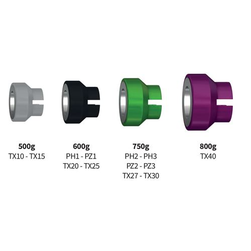 Il dispositivo di trattenimento si adatta perfettamente alla testa della vite e la tiene in posizione perfettamente verticale rispetto all'inserto agevolando il processo di avvitatura.