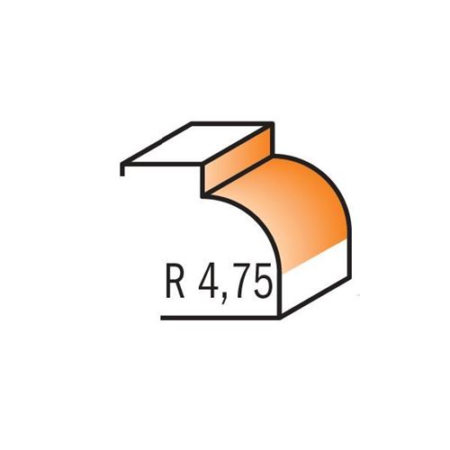 Frese a raggio concavo con cuscinetto inferioreAttacco cilindrico diametro 6 mmDiametro fresa 22.2 mmRaggio 4.75 mmAltezza tagliente 12.7 mmDiametro cuscinetto 12.7 mmForo cuscinetto 4.76 mmAltezza cuscinetto 5 mm
