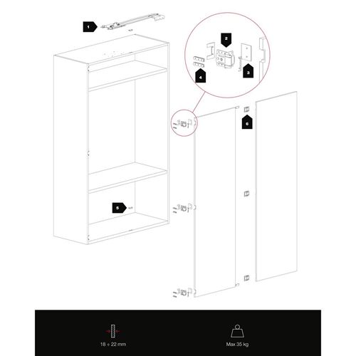 Set pantografo reversibile e cerniere per realizzare una coppia di ante.