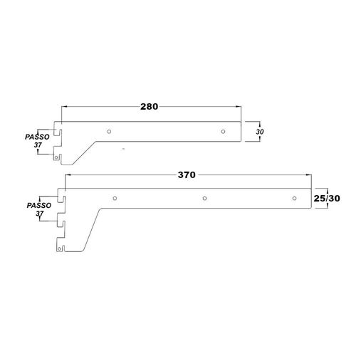 Coppie reggimensole per cremagliere passo 37 mm da avvitare lateramente a filo del ripiano.