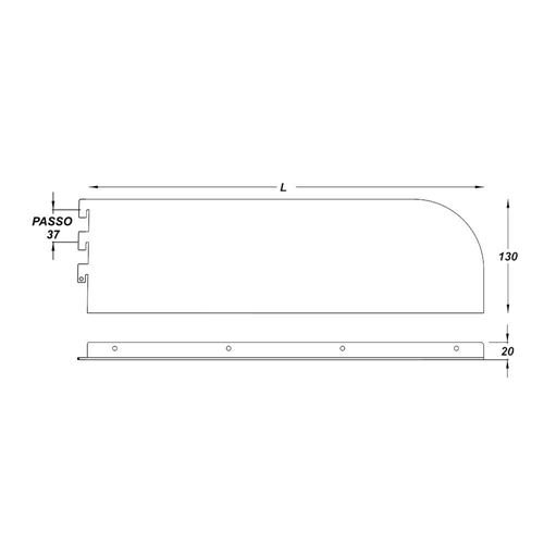 Coppie reggimensole con spalla di contenimento per cremagliere passo 37 mm da avvitare lateramente al ripiano.