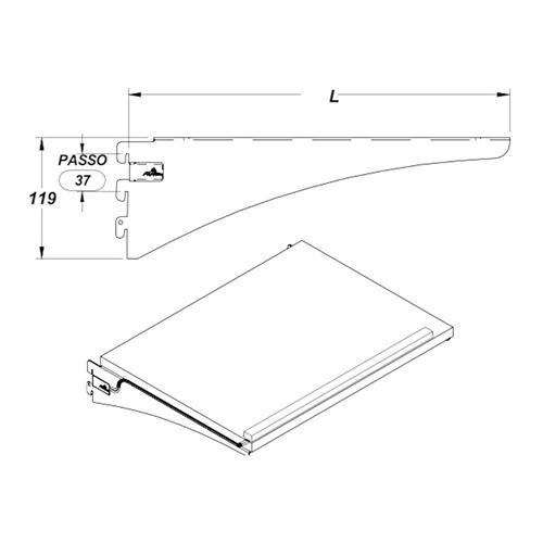 Coppia di reggimensole con piega da avvitare con connettori K-Plug per l'elettrificazione della mensola.