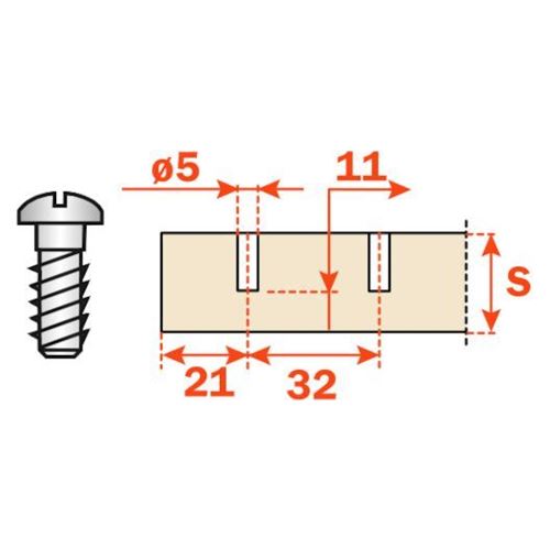 Regolazione verticale +/- 2 mm. mediante eccentrico.Base in zama.Fisaggio alla spalla con foratura lineare mm. 21+32Fissaggio vite euro d. 5 preinserite