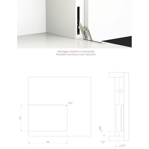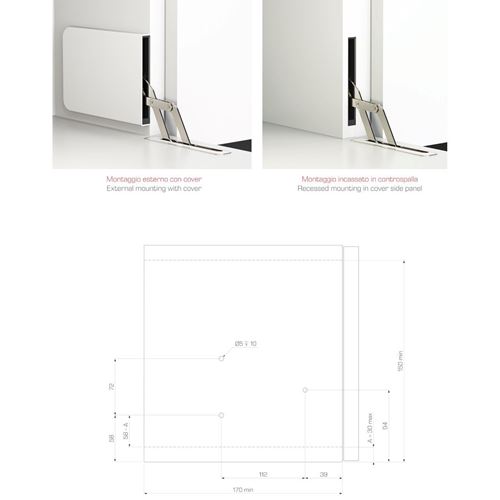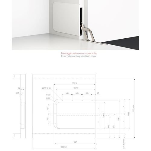 Unico è un meccanismo per ante a ribalta con cerniera integrata. Ha uno spessore di soli 12 mm (13,5 mm con cover).