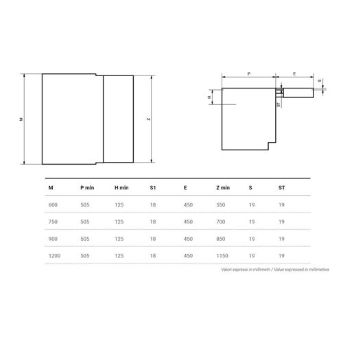 Altezza minimima richiesta all'interno del mobile: 125 mm