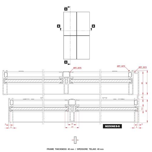 telai fine ante esterna mm 40 nero mm 1400x2700