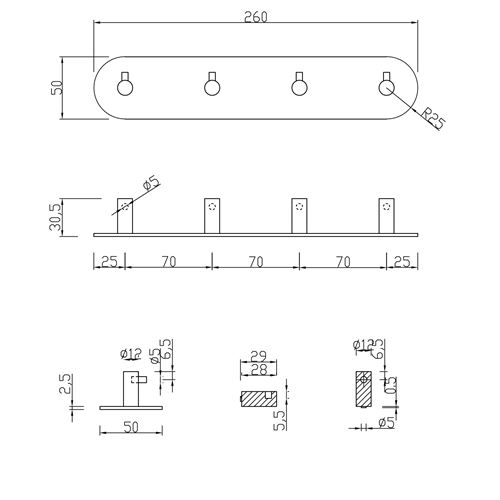 ganci portasalviette tours/4 nero op. c/biadesivo 3m