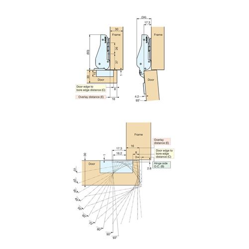 Mezzo collo per montaggio con anta in battuta con sormonto sulla