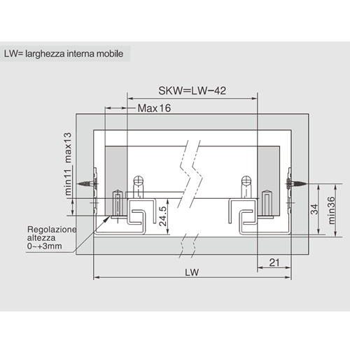 Spessore massimo fianco cassetto 16 mm