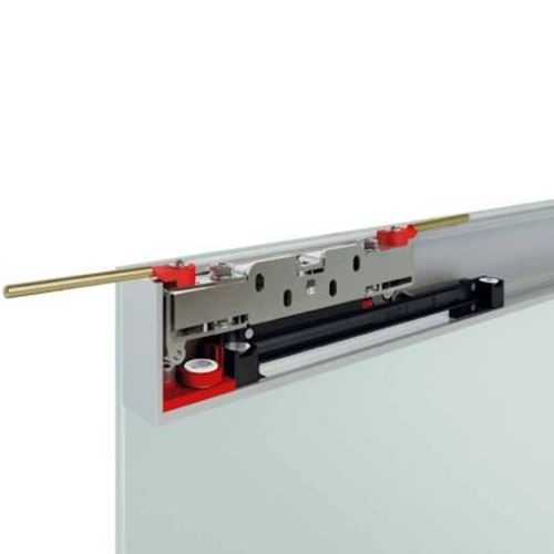 Il sistema integra fermi ammortizzati brevettati, per una frenatura di oltre 50 mm, mantenendo gli stessi ingombri della porta.