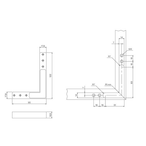 Squdretta angolare per il fissaggio della cerniere Ankor DS30 sullo